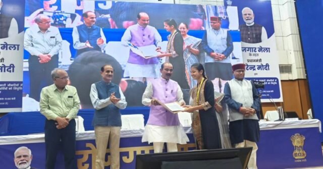 देहरादून : सर्वे ऑफ इंडिया देहरादून के ऑडिटोरियम में राजस्व विभाग, सीबीआईसी द्वारा ‘रोजगार मेले’ के 15वें चरण का आयोजन किया गया। प्रधानमंत्री नरेंद्र मोदी ने वीडियो कॉन्फ्रेंसिंग के माध्यम से आयोजन को संबोधित किया और देश भर के 47 स्थानों पर 51,000 से अधिक चयनित उम्मीदवारों को नियुक्ति पत्र सौंपे।