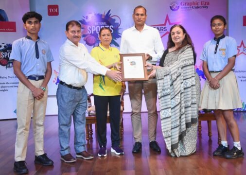 खेल मंत्री रेखा आर्या ने गुरुवार को ग्राफिक एरा हिल यूनिवर्सिटी में आयोजित राइजिंग स्टार कार्यक्रम में 20 स्कूलों के चैंपियन खिलाड़ियों को सम्मानित किया। यह आयोजन राष्ट्रीय खेल दिवस के उपलक्ष में किया गया था।