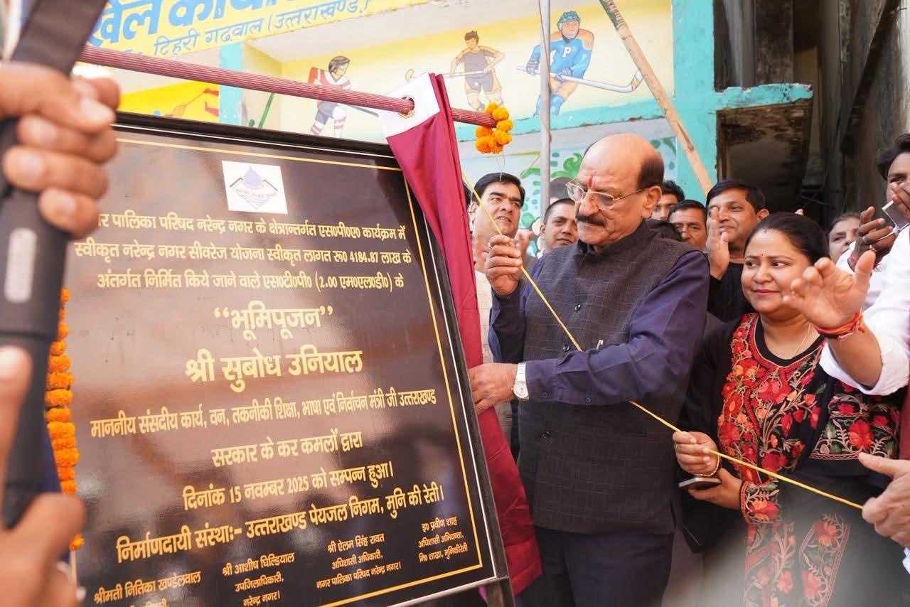 नगर पालिका परिषद नरेंद्रनगर में बुधवार को 41.84 करोड़ रुपये की लागत से निर्मित किए जाने वाले सीवेज ट्रीटमेंट प्लांट का भूमि पूजन कार्यक्रम आयोजित किया गया। इस अवसर पर वन मंत्री